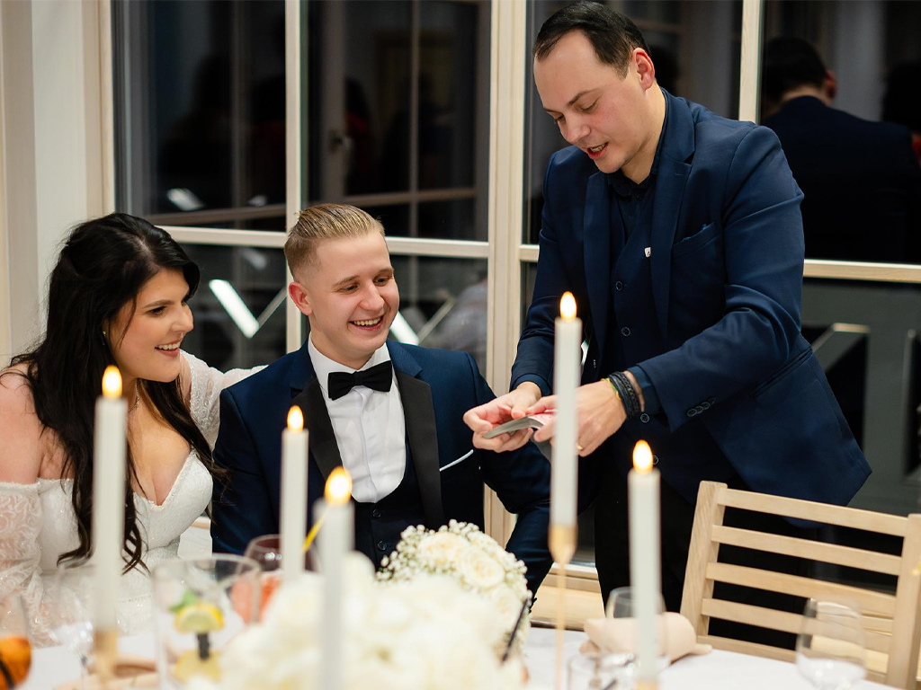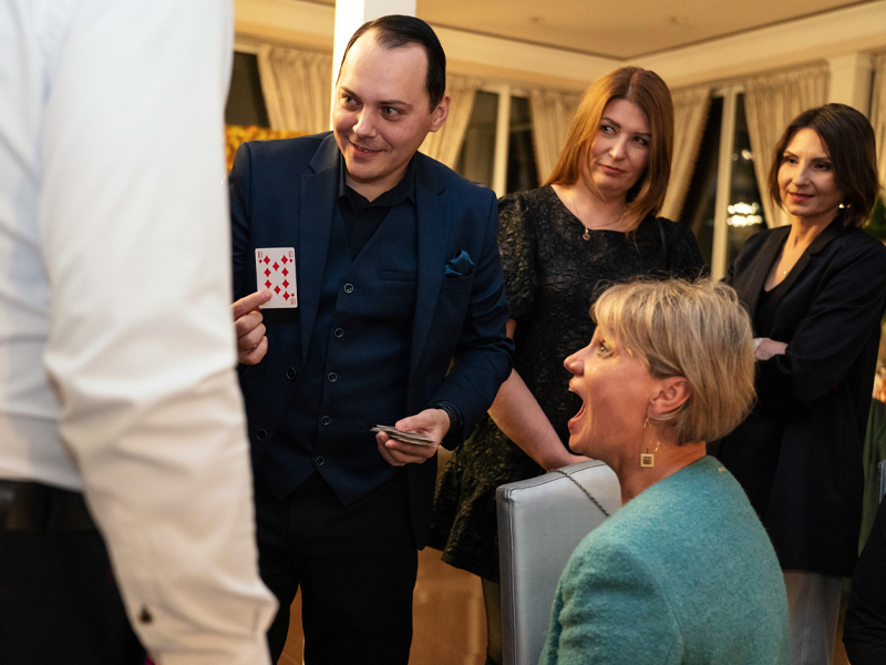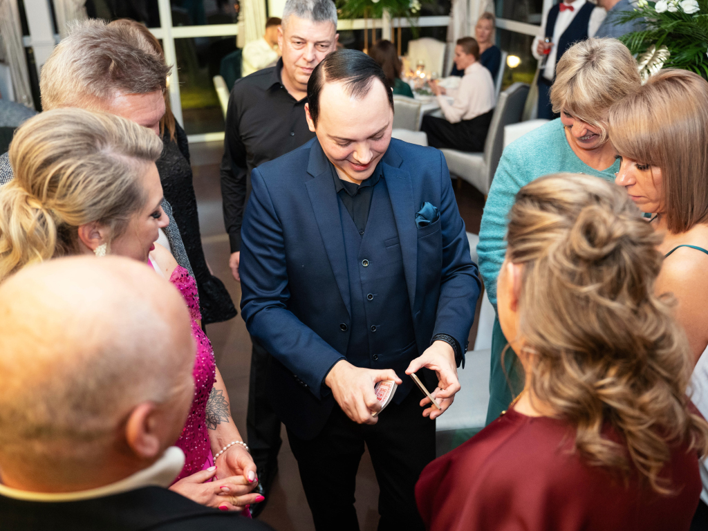 Tai elegantiška, įtraukianti ir visiems amžiams tinkanti pramoga, suteikianti renginiui išskirtinumo. Nicholas Kin prisitaiko prie šventės formato ir auditorijos, kurdamas dinamišką programą su humoro, netikėtumo ir aktyvaus svečių įsitraukimo elementais. Vestuvių, metu magija gali tapti subtiliu akcentu svečių sutikimo ar vakarinės programos metu, sukurdama jaukią ir stebuklingą atmosferą. Įmonių renginiuose ir Privačiose šventėse iliuzijos meno pasirodymas ne tik linksmina, bet ir skatina bendravimą, laužo ledus bei stiprina žiūrovų ryšį - todėl kiekvienas triukas tampa asmeniška ir nepamirštama patirtimi.